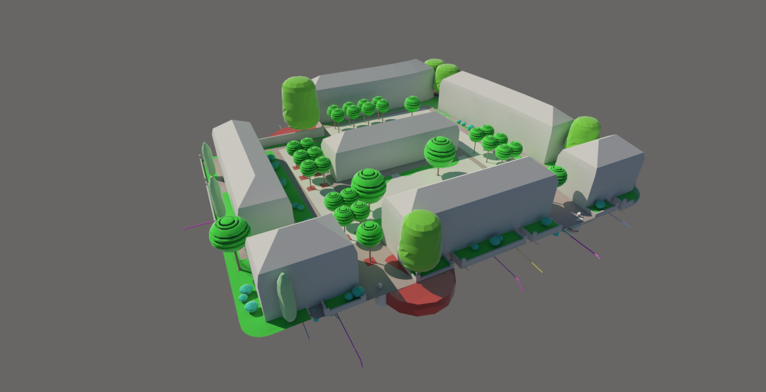 Ein Teil der Wohnungen in der Siedlung Letten 4 wurde für kinderreiche Familien gebaut. Für die heutigen Bedürfnisse von Familien sind die Wohnungen aber deutlich zu klein. Mit einer Gesamterneuerung soll die Siedlung 2018 an die aktuellen Bedürfnisse angepasst werden. Dabei werden auch sämtliche Werkleitungen erneuert. Wir wurden von der Bauherrschaft beauftragt, die Werkleitungen zu koordinieren. Aufgrund der Komplexität entschlossen wir uns, die Leitungen und das projektierte Terrain 3D aufzuzeichnen. Die Kollaboration konnte deutlich verbessert und Kollisionen ausgeschlossen werden.